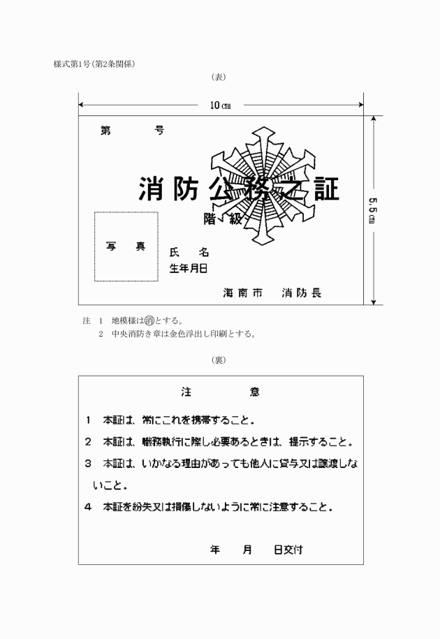 第2条 法第4条第2項(法第34条第2項において準用する場合を含む。)の規定による証票は、様式第1号のとおりとする。