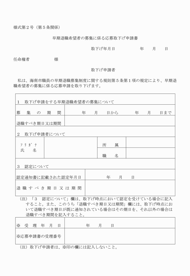 ○海南市職員の早期退職募集制度に関する規則